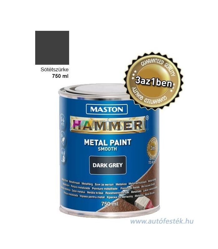 A Maston Hammer közvetlenül a rozsdára alkalmazható fém festék, mely alkalmas mindenféle fémfelület festésére beltéren és kültéren egyaránt. 3 az 1-ben, így egyszeri alkalmazással biztosít rozsda elleni védelmet, alapozást és felületi festést is.