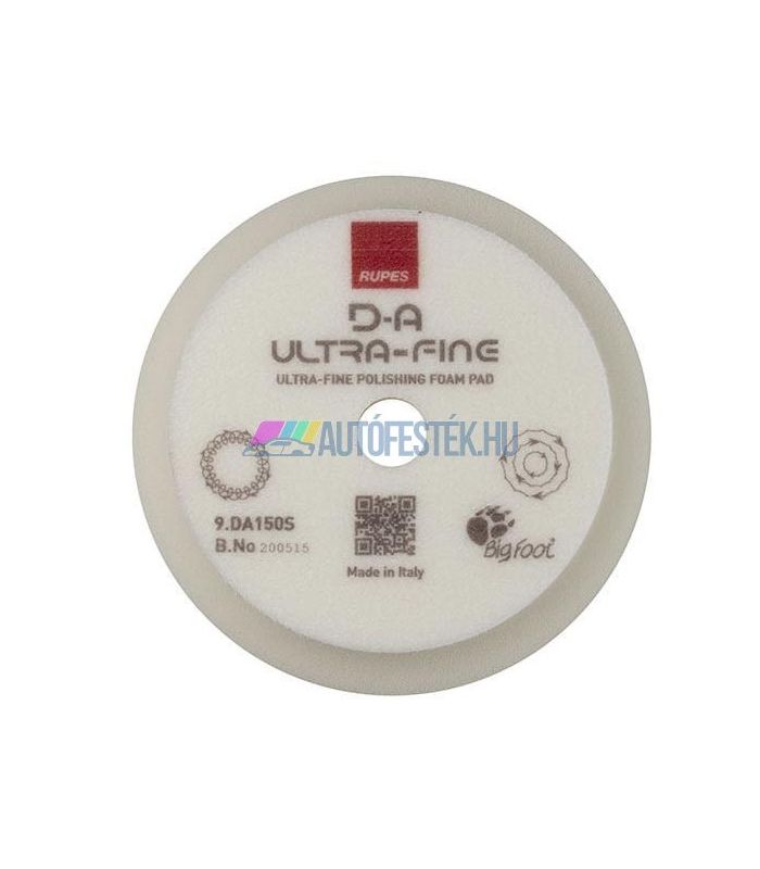 A DA ULTRAFINE szivacspad a legjobb minőségű Rupes szivacs, amelyet rendkívül magas fényű felületkezeléshez és a nagyon puha festékfelületek polírozásához tervezték. A DA ULTRA-FINE polírszivacs egyedi anyagösszetétele miatt használható tömítőanyagok vagy viaszok felhordására is, ha nincs szükség korrekcióra. Párosítsa az UNO PURE rendkívül finom univerzális finispasztával, hogy eltávolítsa a rendkívül finom hibákat, hogy még a legnehezebben befejezhető fényezéstípusok esetén is kiváló eredményt érhessen el.