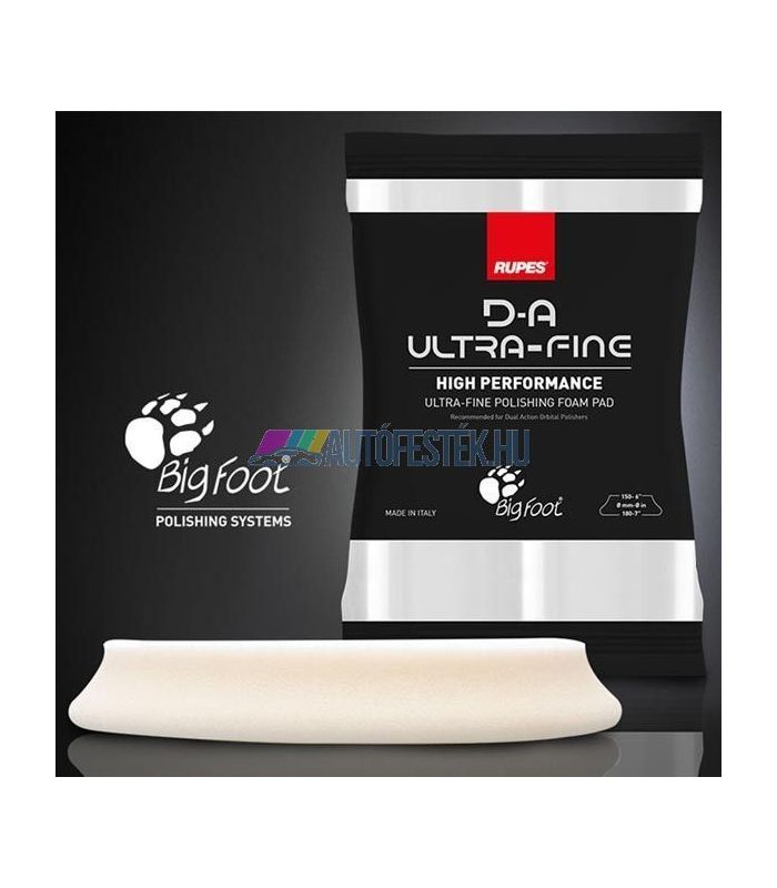 A DA ULTRAFINE szivacspad a legjobb minőségű Rupes szivacs, amelyet rendkívül magas fényű felületkezeléshez és a nagyon puha festékfelületek polírozásához tervezték. A DA ULTRA-FINE polírszivacs egyedi anyagösszetétele miatt használható tömítőanyagok vagy viaszok felhordására is, ha nincs szükség korrekcióra. Párosítsa az UNO PURE rendkívül finom univerzális finispasztával, hogy eltávolítsa a rendkívül finom hibákat, hogy még a legnehezebben befejezhető fényezéstípusok esetén is kiváló eredményt érhessen el.